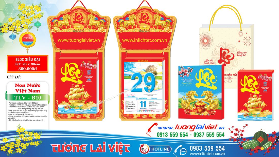 Ngoài ra, In TLV còn sản xuất và phân phối những Mẫu lịch tết treo tường gắn với các Mẫu Lịch bloc Khổ đại như: Lịch bloc siêu cực đại (30×40) khổ A3, Lịch bloc khổ cực đại (25×35), Lịch bloc siêu đại (20×30) Khổ A4, Lịch bloc Khổ đại (17×24), Lịch bloc đại (15×20) khổ A5 và Lịch bloc khổ lớn nhất hiện nay kích thước (38×54).