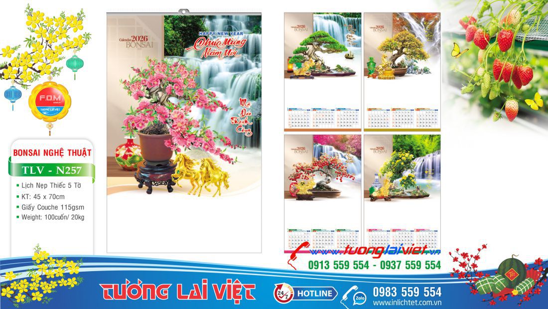 Mẫu Lịch treo tường 5 tờ Bonsai Nghệ Thuật