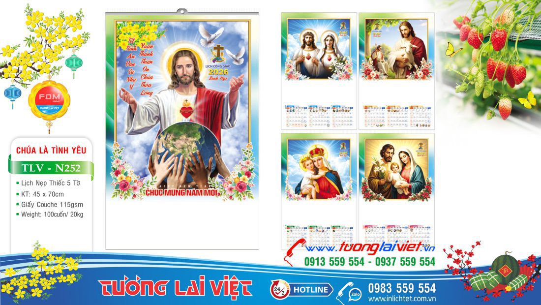 Mẫu Lịch treo tường 5 tờ Chứ Giesu
